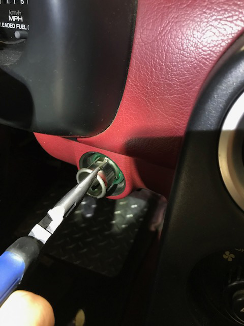 Pull the cigarette lighter our with a pair of plyers. You may need to give one strong tug in order to remove it.