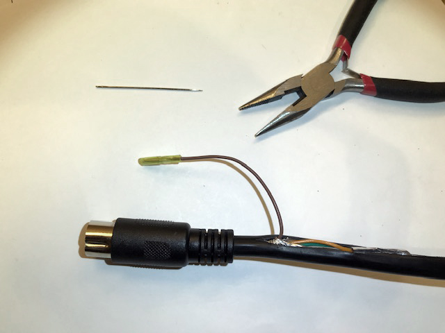 To do this, gently cut open the cable, pull out cables and unwrap the foil. Isolate 4" of the brown wire, cut distal end and crimp on a connector.